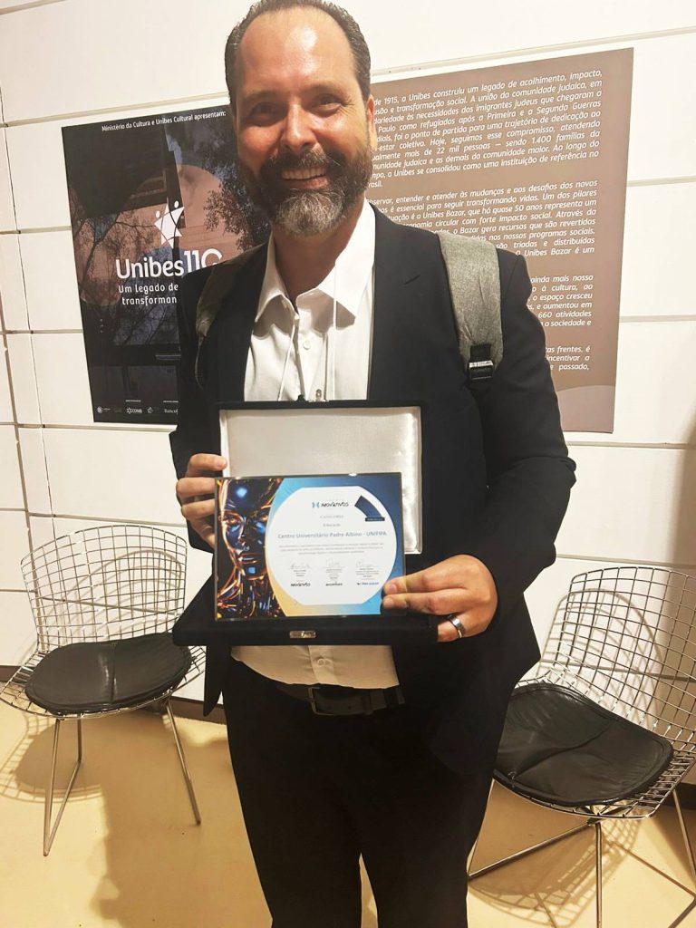 A UNIFIPA foi representada pelo coordenador do curso de Biomedicina, Prof. Dr. Daniel Henrique Gonçalves, e pela Profa. Ma. Giovana Spina, que receberam o troféu pelo projeto “OSCE (Objective Structured Clinical Examination) em Biomedicina UNIFIPA: A prática inovadora na formação profissional com pacientes digitais”, classificado na categoria Educação do Estudo.