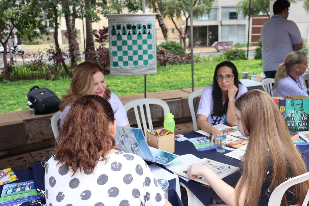 O encontro aconteceu das 9h ao meio-dia, com programação variada, incluindo mini feira de conhecimentos em Ciências, oficinas de literatura, partidas de xadrez, jogos educativos e atividades lúdicas voltadas ao público infantil. Também foram oferecidas orientações sobre o Colégio e suas modalidades de ensino, além de passeios de trenzinho e distribuição de pipoca, que garantiram momentos de lazer em família.