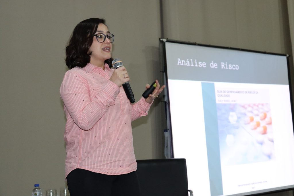 Na primeira fala a farmacêutica Thaísa Galetti Moreno, formada pela Universidade Estadual de Londrina (UEL) e pós-graduada em Gestão Industrial, abordou o tema “Boas práticas para a qualidade e segurança na indústria farmacêutica”. Com mais de 10 anos de experiência na área de controle e qualidade e atualmente coordenadora de Garantia da Qualidade na DLA Pharma, Thaísa ressaltou a importância do farmacêutico em todas as etapas de fabricação de medicamentos. “Meu objetivo é mostrar as boas práticas de fabricação e todos os controles que existem na indústria farmacêutica desde o início das etapas produtivas até a certificação final. Tudo isso envolve a atuação do farmacêutico, que além de garantir a qualidade se torna o responsável direto pelo sucesso ou por possíveis riscos que possam ocorrer”, destacou.