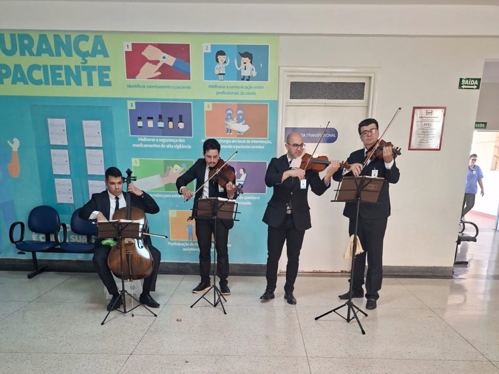 Com repertório de clássicos conhecidos, o Música nos hospitais quer ampliar o gosto pela música erudita como terapia alternativa no processo de recuperação do paciente. “Eu sinto felicidade em participar; afinal, esse é o espaço correto para a música, já que ela ajuda no processo de cura”, relatou um dos músicos voluntários. Iniciada em 2023, a ação é realizada sempre no último sábado de cada mês.