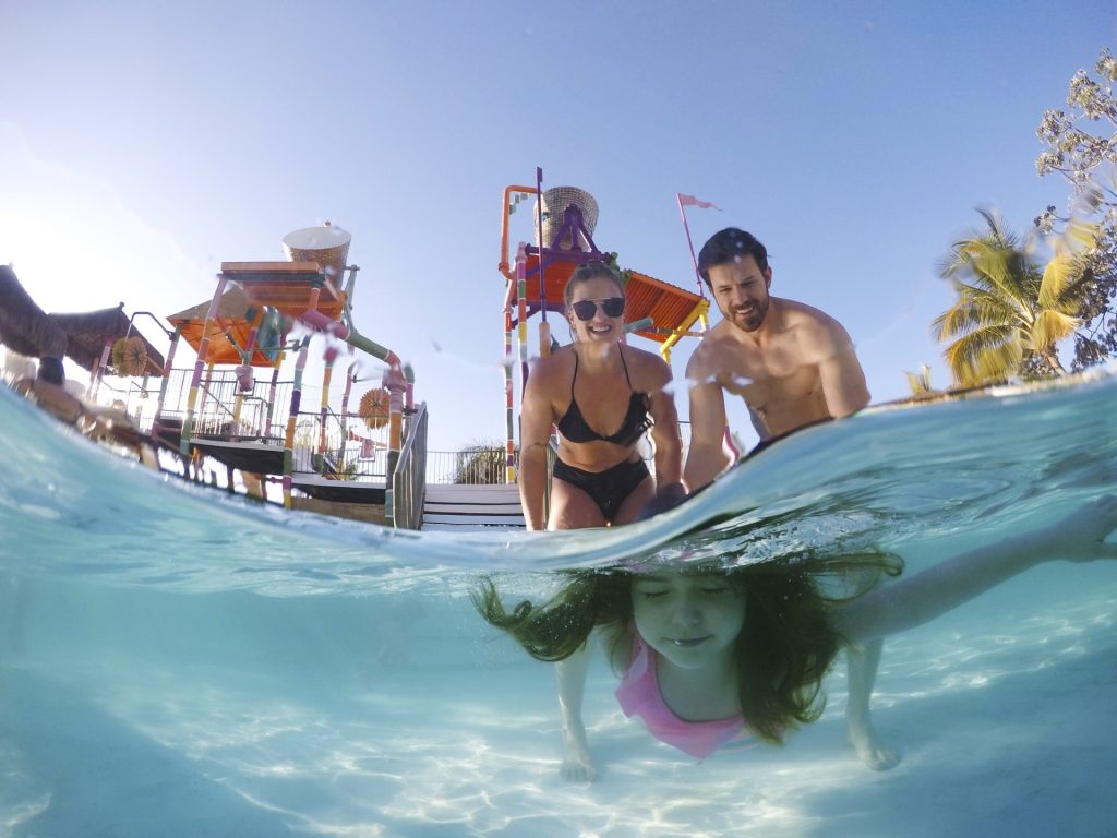 As palmeiras emolduram a praia artificial do parque aquático, que é destino certo para curtir os feriados de novembro