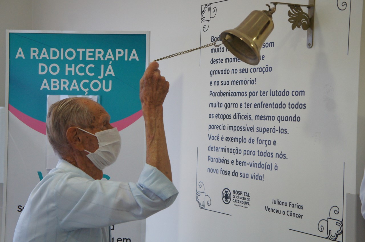 José Antonio Miranda, 91 anos, tocou o Sino da Esperança na última quarta-feira, 8 de junho, simbolizando a conclusão da 20ª e última sessão de radioterapia do seu tratamento contra o câncer no Hospital de Câncer de Catanduva/HCC.