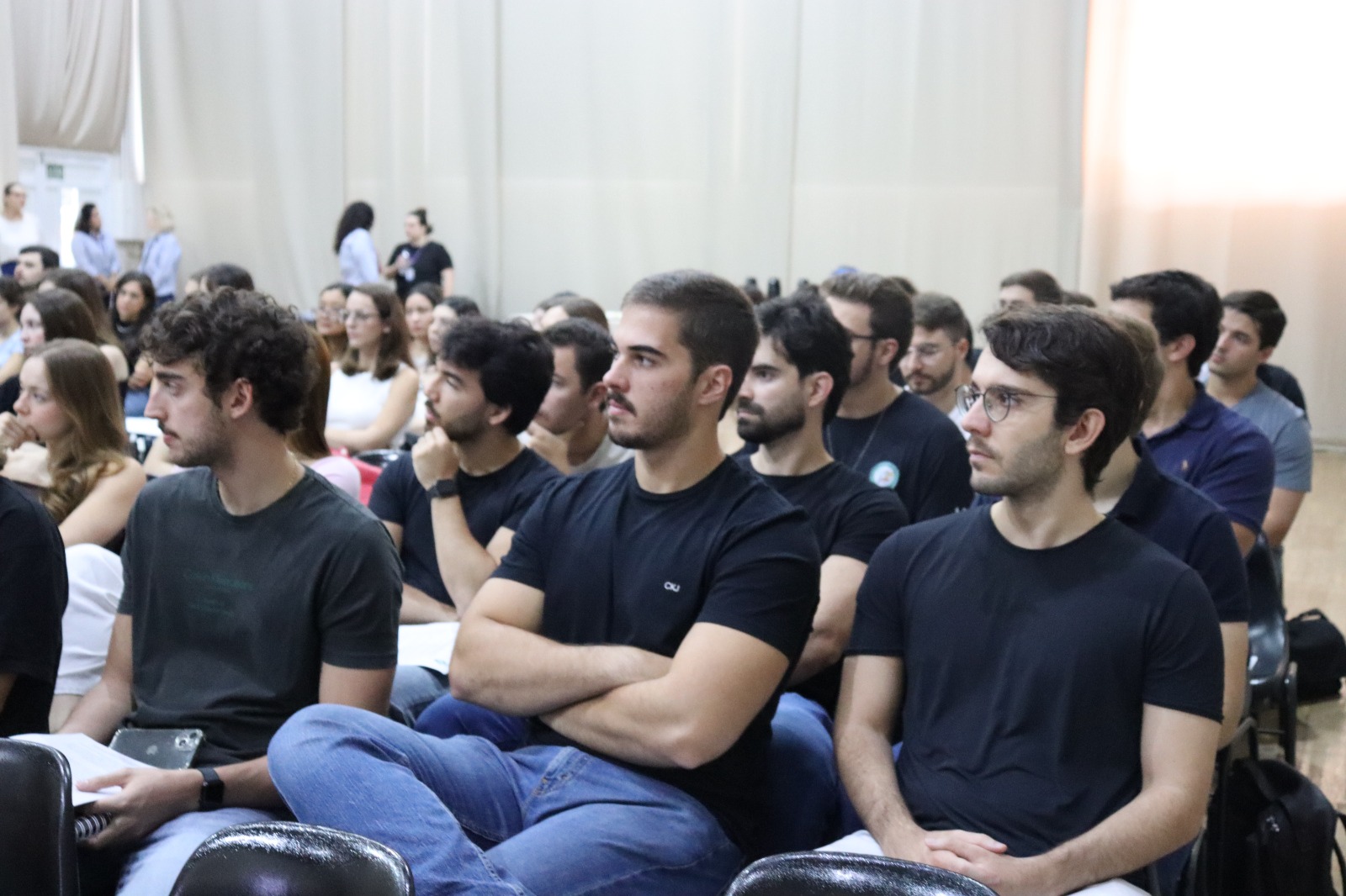 O coordenador do curso de Medicina, Prof. Dr. Jorge Luís Valiatti, fez breve saudação aos alunos, reforçando a relevância do Internato para a trajetória profissional e para a prática médica e a Dra. Leila Renata Ramires Masteguin, do Departamento Jurídico da UNIFIPA, abordou aspectos relacionados às responsabilidades legais e éticas inerentes ao exercício da Medicina.