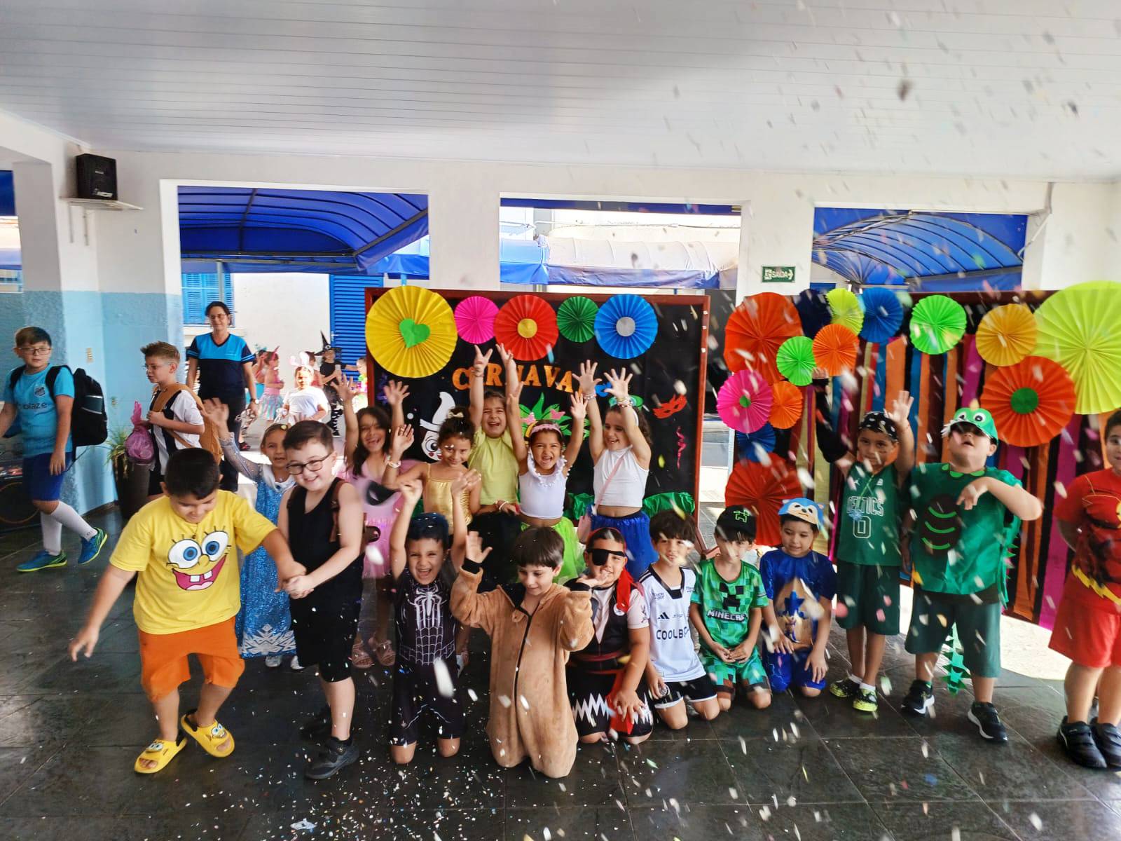 Alunos da Educação Infantil e do Ensino Fundamental I do Colégio Catanduva participaram, no dia 13 de fevereiro, de ação em celebração ao Carnaval. A proposta foi promover a integração entre os grupos, incentivar o protagonismo dos estudantes e valorizar elementos da cultura brasileira por meio do vestuário, música e outras manifestações típicas. As crianças compareceram caracterizadas e participaram de desfile de fantasias, além de diversas brincadeiras organizadas ao longo do período. Marchinhas tradicionais embalaram a programação, marcada por momentos de interação e descontração entre alunos e professores.