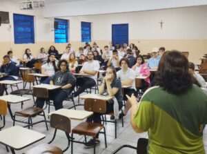 Com o objetivo de dialogar a respeito das formas de evitar a gravidez, 50 alunos do 2º e 3º anos do Ensino Médio, com idade entre 16 e 17 anos, do Colégio Catanduva, participaram da palestra ‘Métodos contraceptivos’, na manhã de 13 de outubro. Ministrada por alunos do 3º ano do curso de Enfermagem/Unifipa e supervisionados pela Profa. Dra. Maristela Magri, os graduandos partilharam junto aos adolescentes conhecimentos prévios em relação ao tema e esclareceram dúvidas momentâneas.