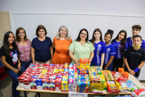 Alunos e professores da escola Prof.º Athayr da Silva Rosa realizaram a entrega dos alimentos arrecadados na Gincana Solidária para o Hospital de Amor de Fernandópolis, na última semana.