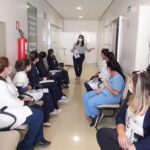 O procedimento reuniu 14 profissionais e foi ministrado pela representante da Triomed, Natália Arduini Salomão, e das auxiliares de enfermagem Josandra de Cássia Airoldi e Tauana Cândido Santana, ambas colaboradoras do AME Catanduva e exercem as atividades no setor de endoscopia. “Durante o treinamento abordamos in-loco as etapas de limpeza, desinfecção e armazenamento dos aparelhos gastrointestinais”, falou a gerente de Enfermagem da unidade, Jaqueline de Cassia Brambila que, junto da gerência administrativa e do Centro de Controle de Infecção Hopistalar, promoveram a ação. “É importante reciclar a equipe de enfermagem e capacitar os demais, trocando experiências do dia-a-dia, pois a evolução permanente da tecnologia conduz a reavaliar constantemente suas práticas de cuidados de enfermagem”, completou Jaqueline.