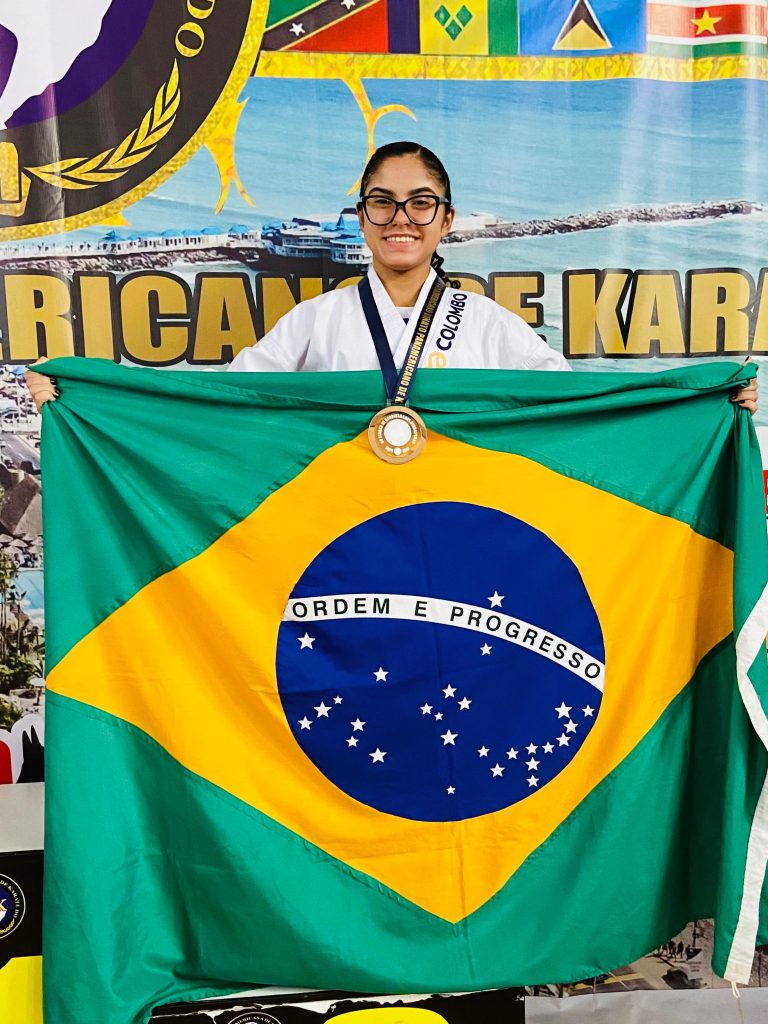 A atleta Lívia Dominici, de Pindorama (SP), brilhou no Campeonato Pan-Americano de Karatê, realizado neste final de semana, dias 4 e 5 de outubro, em Lima, no Peru, e trouxe para o Brasil duas importantes conquistas: medalha de ouro por equipe e medalha de bronze individual na categoria Kumite adulto (21 a 34 anos) faixas marrom e preta, peso absoluto.