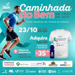 O Hospital de Câncer de Catanduva promove neste domingo, 23 de outubro, a Caminhada do Bem na pista de caminhada do Parque Papa João Paulo II, no aeroporto, a partir das 8h30.
