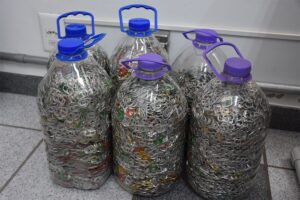 No total, a campanha já destinou 330 quilos de lacres de alumínio para a reciclagem. Em média, 105 quilos de lacres, ou 140 garrafas pets de dois litros cheias de lacre, correspondem a uma cadeira de rodas.