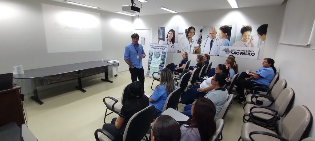 Nos dias 24 e 25 de março, colaboradores do Ambulatório Médico de Especialidades/AME de Catanduva participaram de treinamento voltado ao Plano de Gerenciamento de Resíduos de Serviços de Saúde (PGRSS) e à Norma Regulamentadora nº 6 (NR-06), que trata dos Equipamentos de Proteção Individual (EPIs). A capacitação foi ministrada por William Fernandez, técnico de Segurança do Trabalho do SESMT/FPA e teve como foco reforçar a importância do manejo correto dos resíduos gerados na unidade de saúde, abordando etapas como segregação, armazenamento, transporte, tratamento e destinação final, estabelecer diretrizes e procedimentos que garantam a segurança dos profissionais, dos pacientes e do meio ambiente.