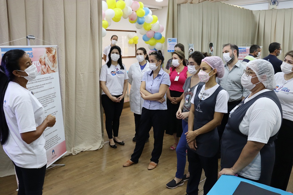 De 5 a 9 de dezembro o Centro Integrado de Humanização, médicos e equipe da Linha de Cuidado Materno-Infantil, Gestão de Cuidado e do Núcleo da Qualidade do Hospital Padre Albino promoveram o ‘Circuito de Sensibilização: juntos pelas crianças – IHAC’, onde os colaboradores do hospital foram convidados a conhecerem as temáticas que abrangem a Iniciativa Hospital Amigo da Criança, certificação conferida pelo Ministério da Saúde. Para isso, a unidade vem implantando melhorias que visam cumprir os Dez Passos para o Sucesso do Aleitamento Materno e de outros requisitos que atendam à saúde da criança e da mulher, instituídos pelo Fundo das Nações Unidas para a Infância (Unicef) e pela Organização Mundial de Saúde (OMS). “Neste circuito tivemos quatro estações que permitiram expor aos colaboradores todo nosso trabalho desenvolvido para obtenção da certificação”, disse a enfermeira Aline Cristina de Poli, coordenadora da Maternidade e Unidade de Cuidados Intermediários Neonatal.