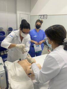 O treinamento ministrado pelas enfermeiras Erika Fachim Esteves, do Núcleo de Educação Permanente do HEC, e Aline Aparecida Theodoro, do setor de Quimioterapia, aconteceu de 23 a 25 maio. Para as aulas práticas foi utilizado boneco.