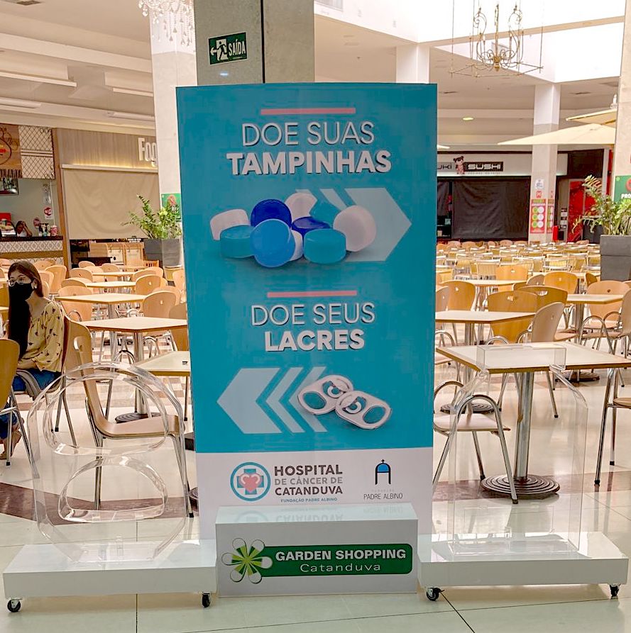 Numa parceria pró Hospital de Câncer de Catanduva/HCC e em benefício do meio ambiente, a Fundação Padre Albino e o Garden Catanduva Shopping implantaram coletor de lacres de alumínio e tampinhas plásticas próximo à praça de alimentação.