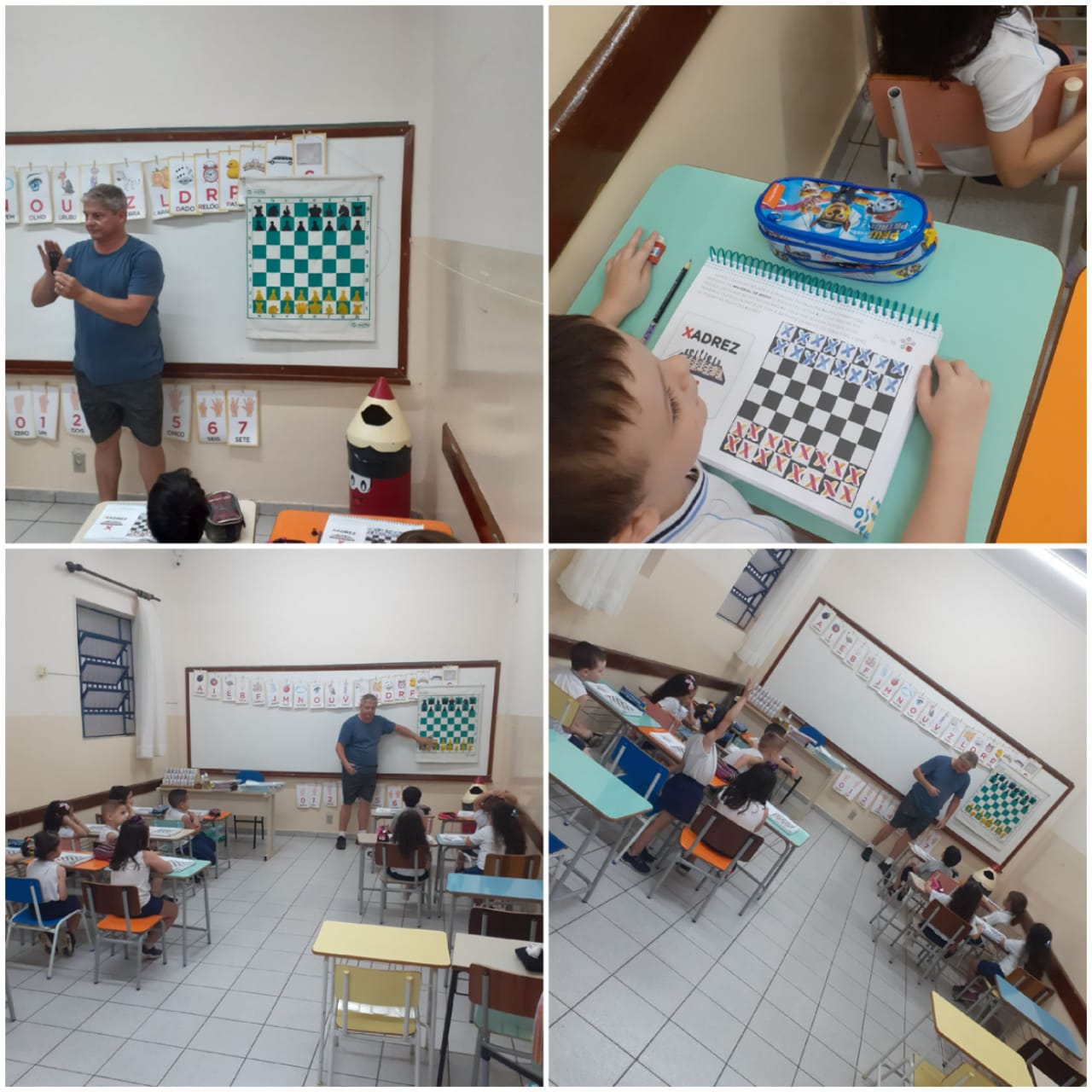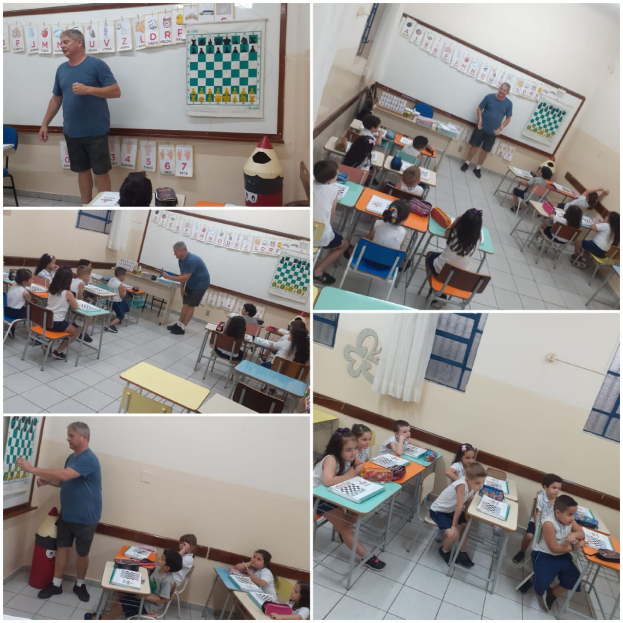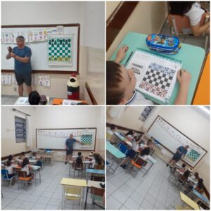 No mesmo dia, alunos da faixa etária de 4 anos e 11 meses tiveram aula com o Prof. Marcus Leandro Tambellini, docente de Xadrez e Educação Física do Ensino Fundamental e Ensino Médio. O professor ministrou aula para a Educação Infantil e Pré I, juntamente com a Profª Joseane. Os professores levaram aos alunos apostila com técnicas do esporte. A Profa. Ma. Fabiana Fiorim Checconi, diretoria pedagógica do Colégio, ressaltou a importância da dinâmica “as crianças amaram e participaram com perguntas e respostas bem criativas, cada um com seu jeitinho, construindo com amor e desenvolvendo habilidades na primeira infância sempre”.