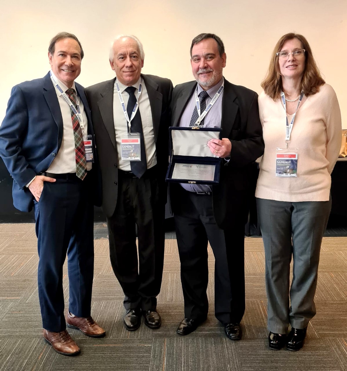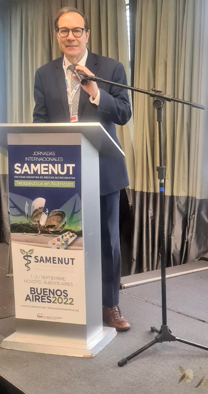 Dr. Durval é presidente da ABRAN – Associação Brasileira de Nutrologia e foi muito bem recebido pela comitiva argentina, ressaltando a relevância que a nutrologia brasileira possui na América Latina. Durante seu discurso, ele retribuiu, entregando placa de homenagem em nome da ABRAN ao presidente da SAMEMUT, Prof. Dr. Raul Sandro Murray, junto da comissão científica do evento. “Foi realmente uma oportunidade de transmitir conhecimentos, trocar experiências e ainda ser enaltecido como presidente de honra, o que muito me deixa lisonjeado, pois confere à ABRAN e ao Brasil um posto importante junto da nutrologia latino-americana”, destaca o médico.
