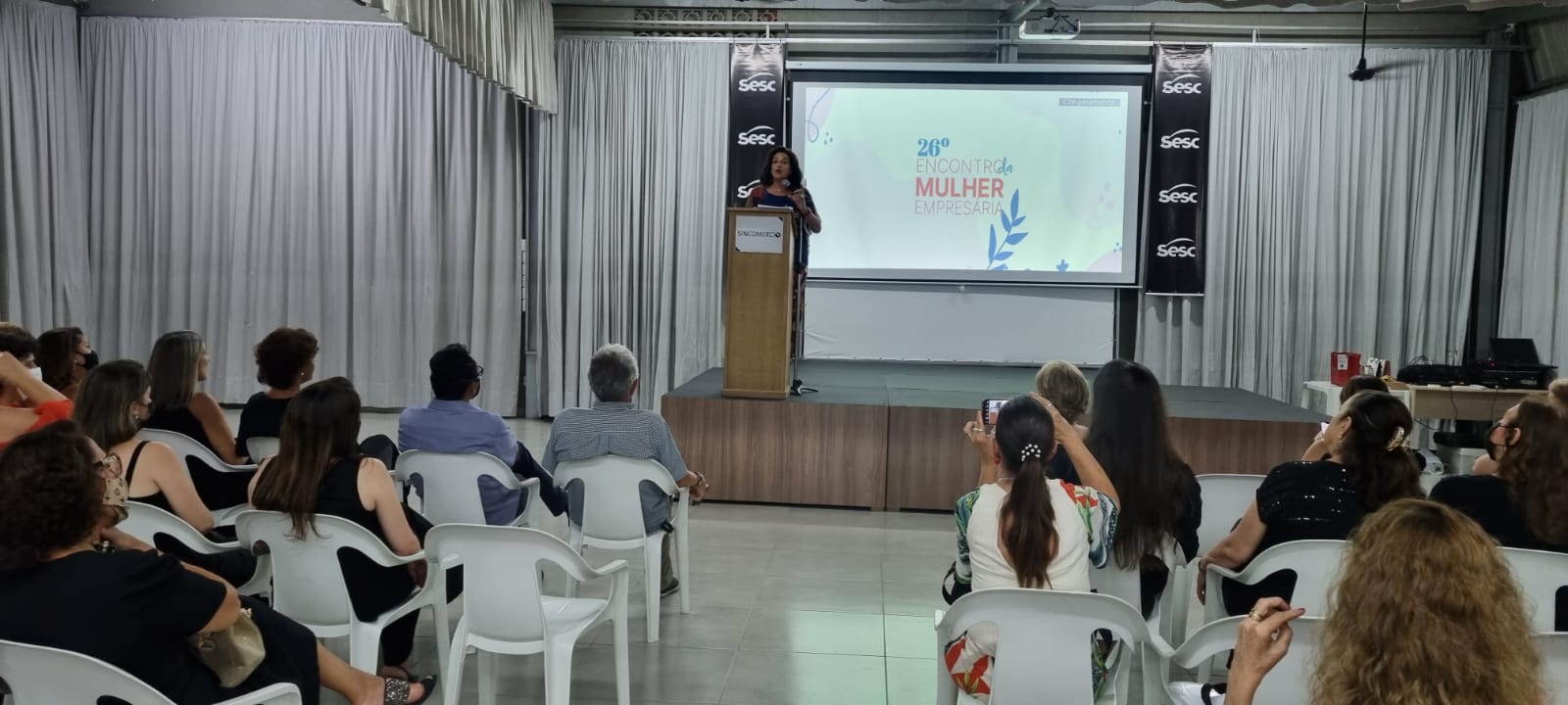 A palestrante, Vera Simão, se encantou com o número de mulheres presentes e parabenizou a organização do evento pelo capricho e preocupação com todas as medidas sanitárias.