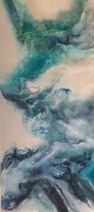 Em uma série de obras, a artista transpõe para as telas suas experimentações criativas e técnicas, em pinturas abstratas com cenas de águas em suas mais diversas formas. Em um contexto não tão objetivo, Claudia tece suas obras para permitir que o espectador trilhe seu próprio caminho de interpretação por sua imaginação.