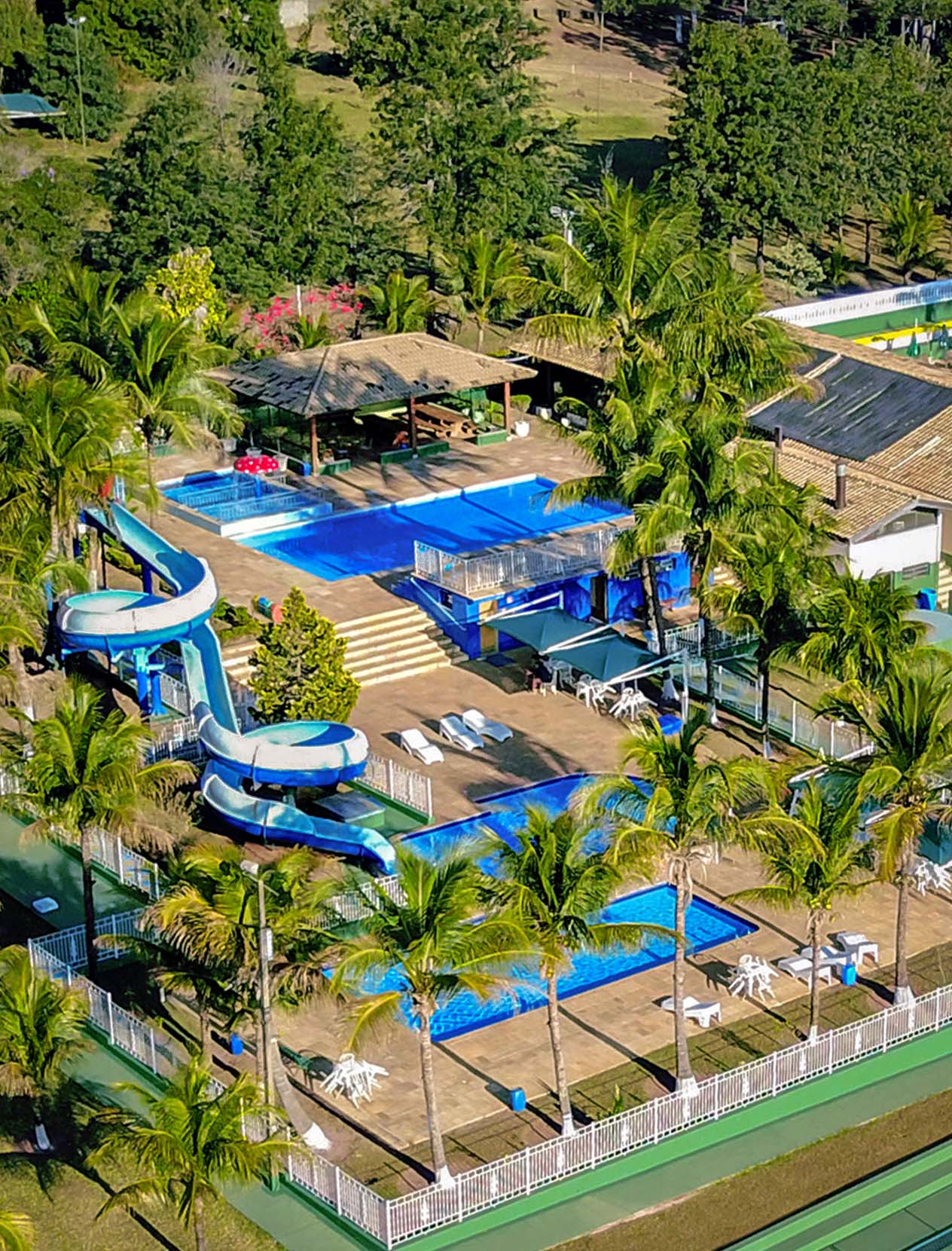 A infraestrutura de lazer conta com um verdadeiro parque aquático com cinco piscinas, dois toboáguas, além de cama elástica, sauna, jacuzzi coberta, academia, salão de jogos, quadras poliesportivas, ginásio, campos de futebol, paintball, fazendinha com minizoológico, lago com tirolesa, sala de leitura, sala de TV, brinquedoteca, redário, além de serviços opcionais de babá e massagem.