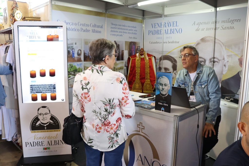 No estande no evento está instalado totem interativo com o site dedicado ao Venerável: padrealbino.org.br