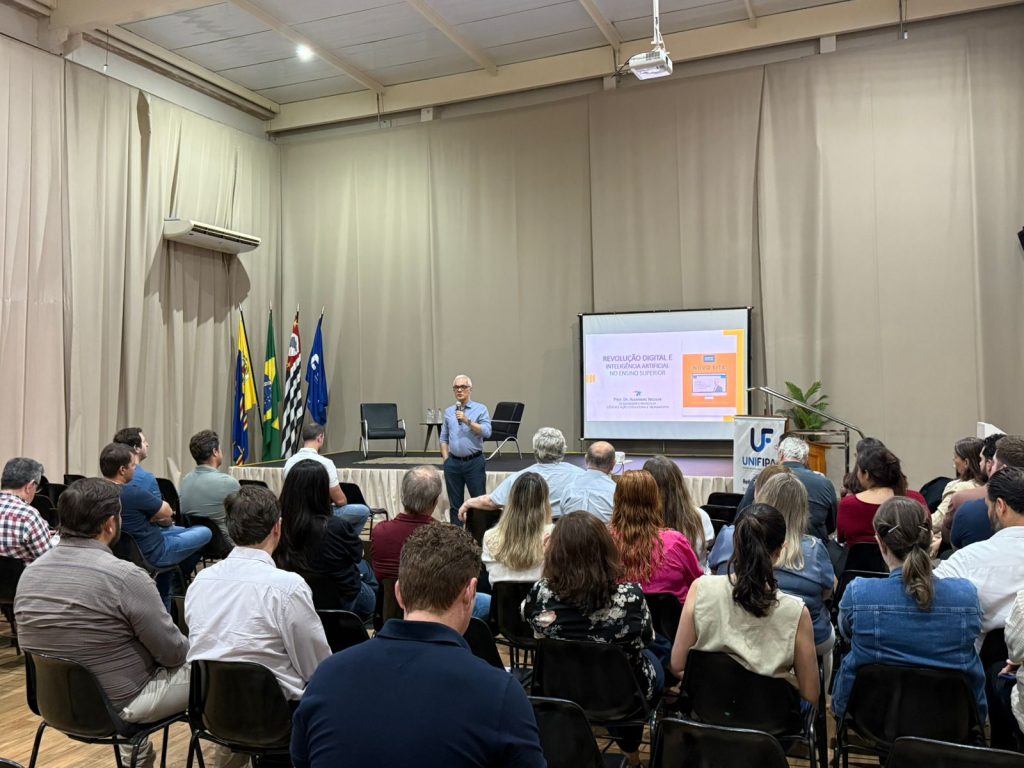 O HUB de Inovação Pedagógica da UNIFIPA realizou, no dia 8 de outubro, a palestra “Revolução Digital e Inteligência Artificial na Educação Superior” ministrada pelo representante do MEC, Prof. Dr. Alexandre Nicolini, como parte do programa de Formação Continuada Docente. O encontro ocorreu no campus sede, reunindo mais de 40 docentes entre coordenadores e professores dos cursos de graduação da Unifipa.
