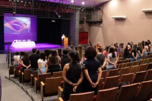 No dia 24 de outubro, a Liga de Oncologia do curso de Enfermagem da Unifipa realizou a “II Mesa Redonda: Outubro Rosa – alimentação e câncer de mama” no Teatro Municipal Aniz Pachá, em Catanduva. O evento contou com a participação do médico e docente do curso de Medicina/Fameca, Prof. Dr. Durval Ribas Filho, e a docente dos cursos de Medicina e Enfermagem da Unifipa, Profa. Dra. Paola Alexandria P. de Magalhães.