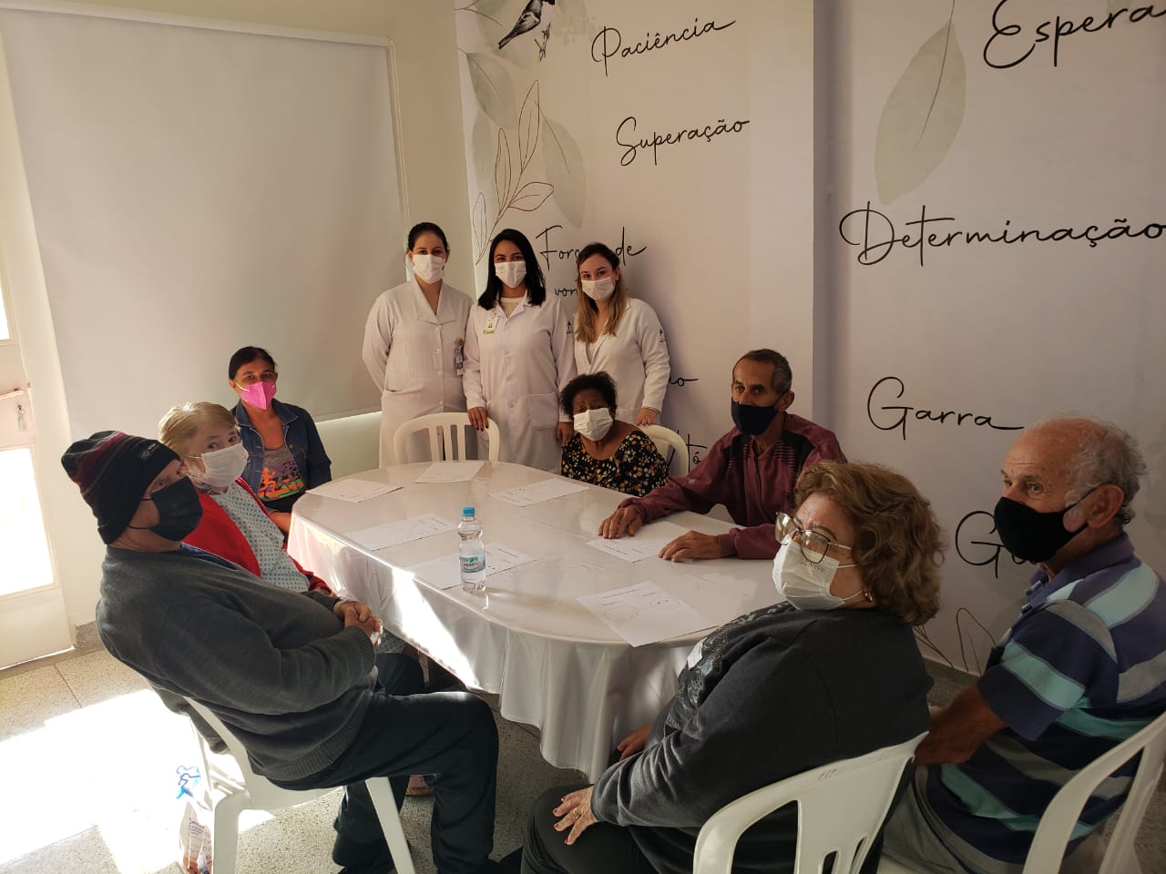 Pacientes e acompanhantes do Hospital Emílio Carlos participaram da dinâmica “Longevidade sem rótulos” na Idosoteca no dia 24 de maio.