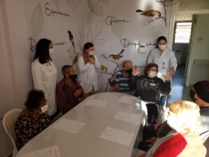 Conduzida pela psicóloga Beatriz Gobi, foram abordadas crenças do envelhecimento com o intuito de desmistificar conceitos e pensamentos errôneos. A ação foi realizada pelo Comitê Amigo do Idoso e Grupo de Trabalho de Humanização. Participaram a assistente social Amanda Patrícia Paulino, a coordenadora do Serviço de Fisioterapia, Bruna Gabriela de Oliveira, e a fisioterapeuta Larissa Siqueira.