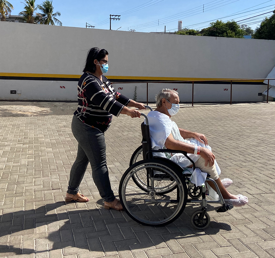 “Venho todos os dias para acompanhá-lo. Consigo servir o almoço e a janta. Passamos alguns dias difíceis. Vê-lo em recuperação e, ainda por cima, ganhando esse banho de sol, é motivo de muita felicidade”, disse Walmira.