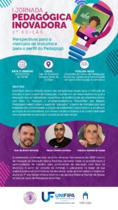 AGENDAEvento: I Jornada Pedagógica Inovadora: “Perspectivas para o mercado de trabalho  e para o perfil do Pedagogo” (2ª Edição)