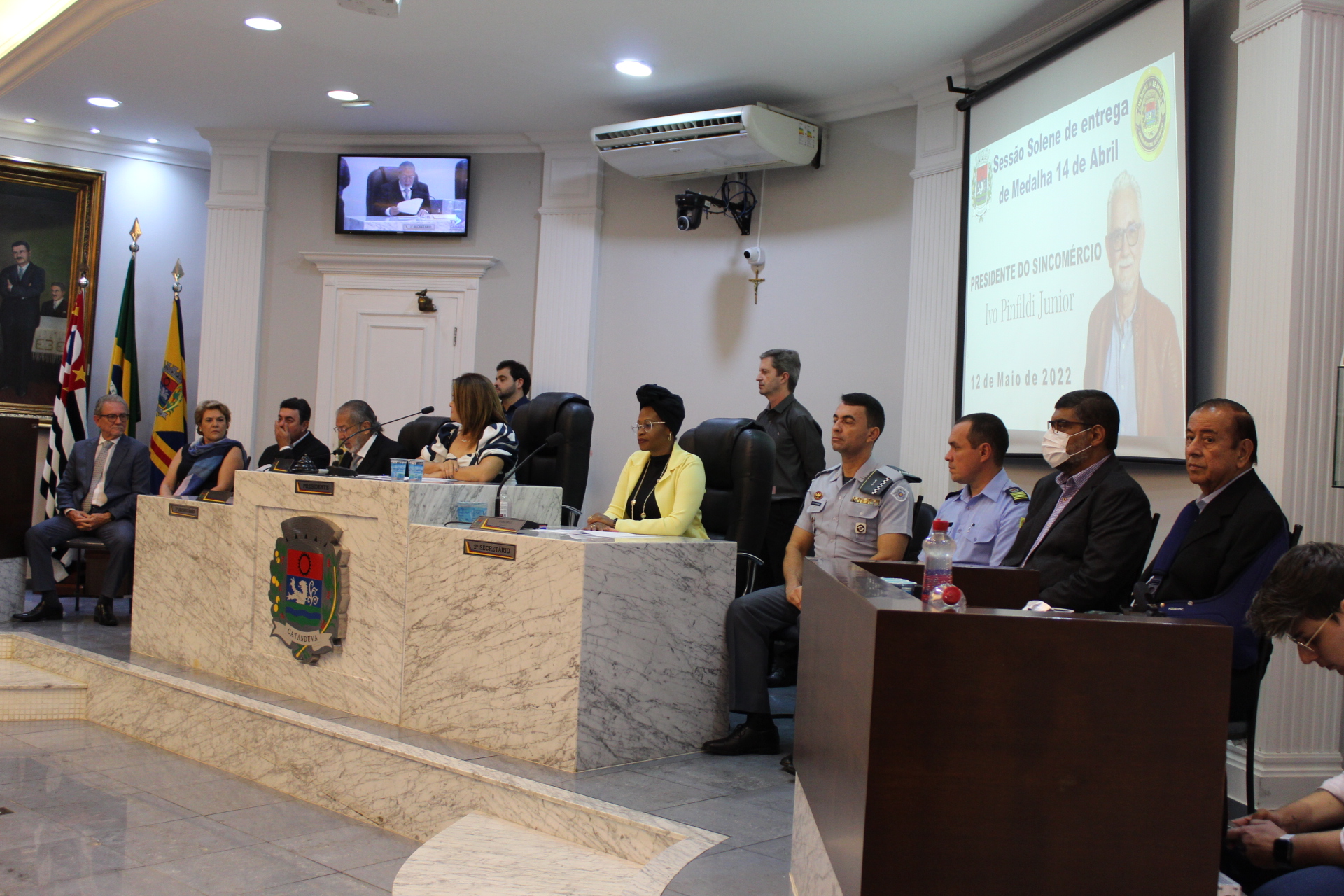 A Sessão Solene de entrega da Medalha 14 de Abril aconteceu no Plenário da Câmara Municipal.