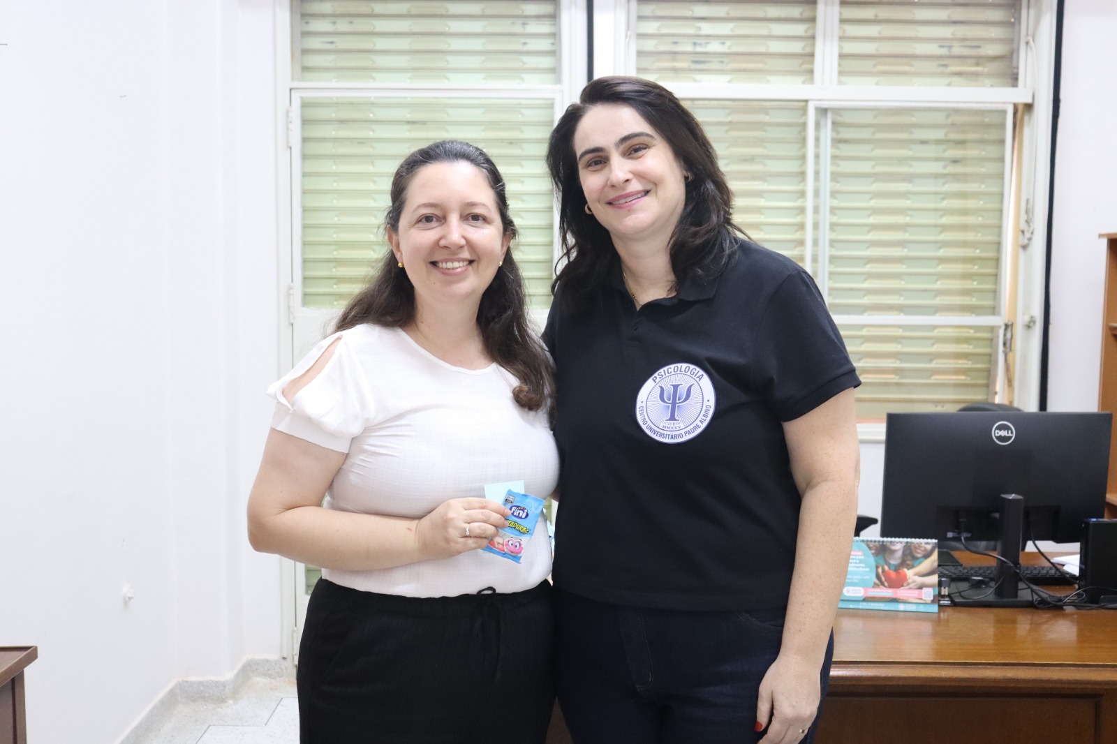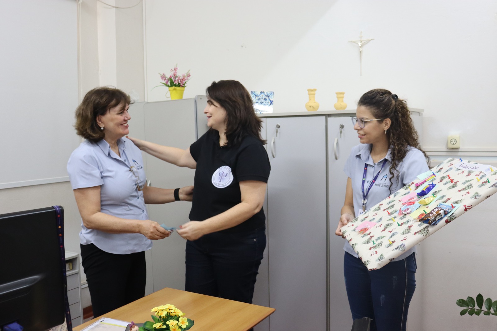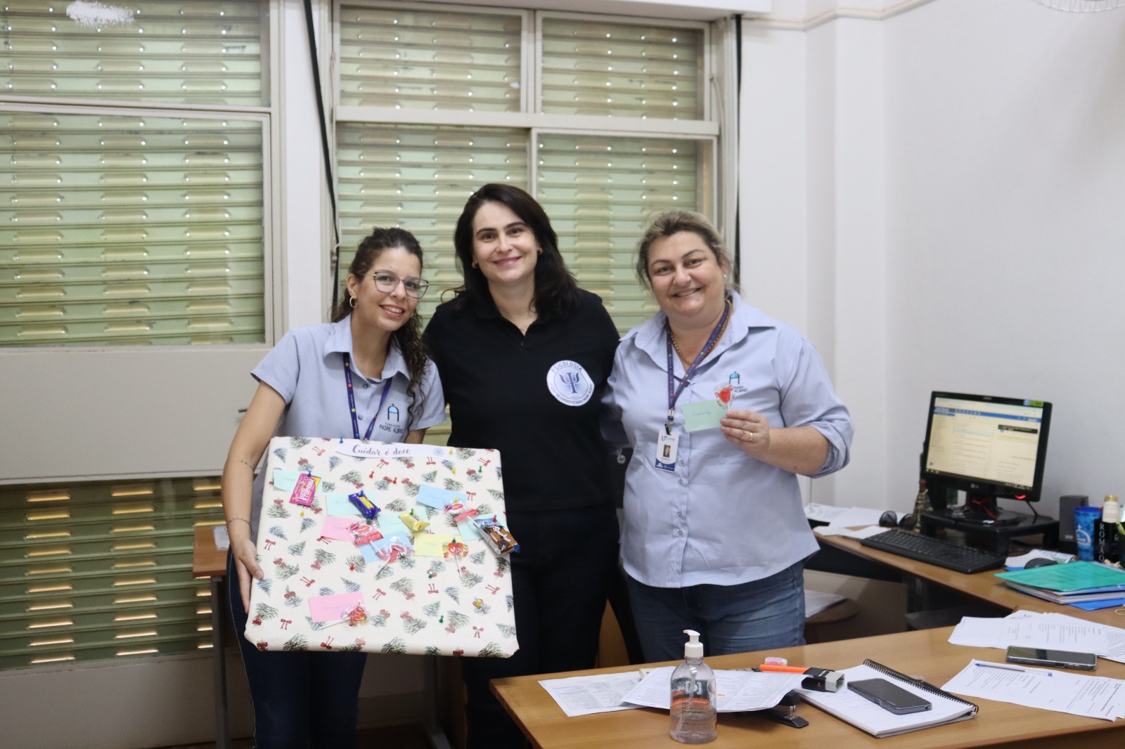 A coordenadora do curso de Psicologia, Profa. Dra. Luciana Calza, e a secretária do curso, Alessandra Silva dos Santos, participaram da ação distribuindo os doces acompanhados das frases. De acordo com Luciana, iniciativas como essa contribuem para fortalecer o clima institucional, valorizando o cuidado e o reconhecimento no ambiente de trabalho.