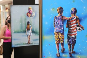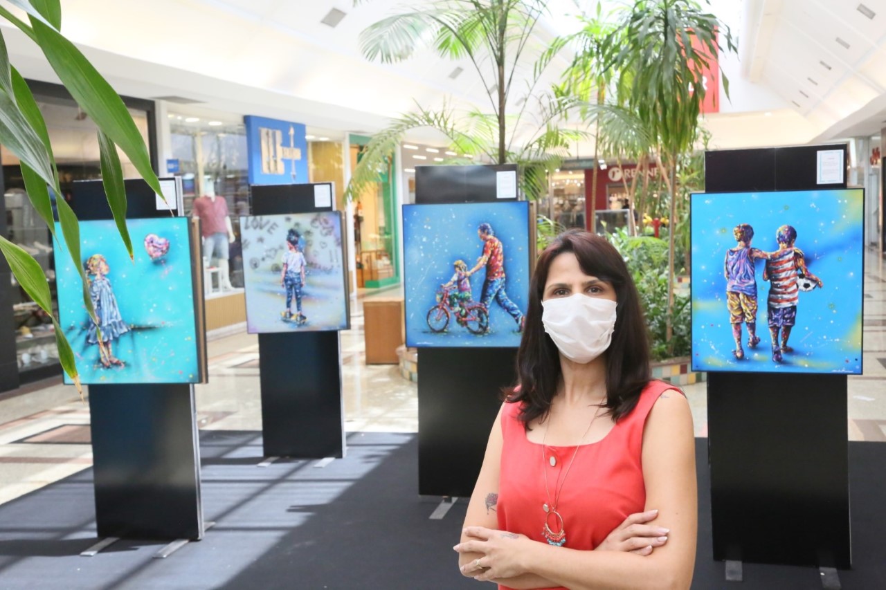 Ao todo são 14 telas, que podem ser conferidas pelo público até 30 de janeiro na Praça 4 de Eventos. “Eu quis através da arte, através das minhas cores, me expressar e mostrar de uma forma colorida e lúdica, imagens que aproximam o público dos sentimentos saudosos de antes da pandemia”, diz a artista.