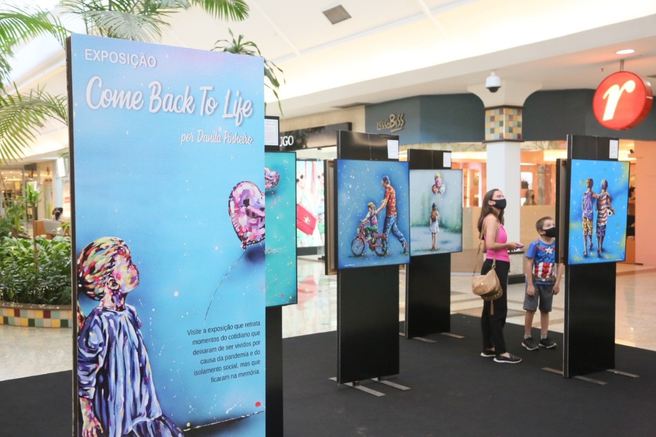 A artista plástica Danila Pinheiro trouxe a exposição “Come Back To Life”, para colorir os corredores do Riopreto Shopping. O público pode conferir obras traduzindo em arte os momentos do cotidiano que deixaram de ser vivenciados por causa da pandemia e do isolamento social, mas que ficaram guardados na memória.