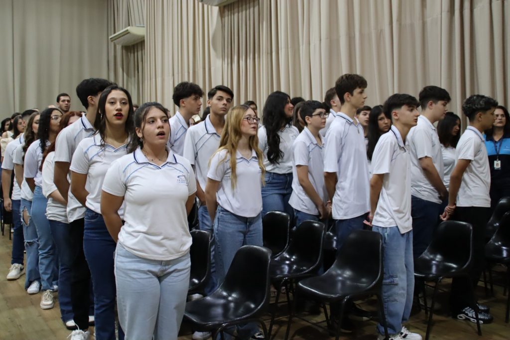 A solenidade foi conduzida pela diretora do Colégio, Profa. Ma. Fabiana Fiorim Checconi, que agradeceu o apoio das famílias e destacou o empenho dos alunos ao longo do ano. Ressaltou ainda que a entrada no Ensino Médio representa novas responsabilidades e desafios, reforçando a confiança no potencial acadêmico e pessoal da turma.