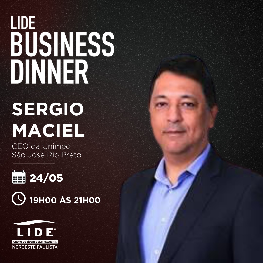 Fechando a programação de maio, dia 24 é a vez dos filiados do LIDE Noroeste Paulista interessados em fazer negócios e parcerias com a Unimed São José do Rio Preto, participarem de um Business Dinner. O encontro serve para apresentar a cultura, a estrutura e os planejamentos da empresa anfitriã, e será comandado pelo seu CEO, Sérgio Maciel.