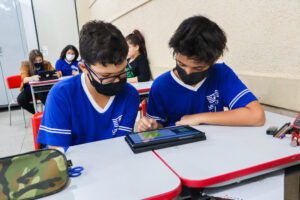 “Além dos alunos utilizarem os tablets para as pesquisas e vídeos complementares, na conclusão de cada capítulo as professoras os instruem à acessarem o QR CODE para fazerem exercícios e jogos referente à matéria estudada”, explica Edlene.