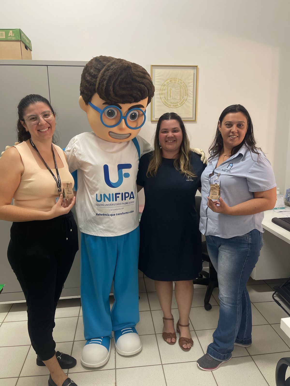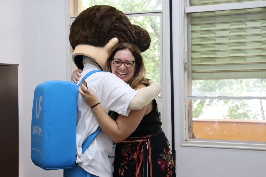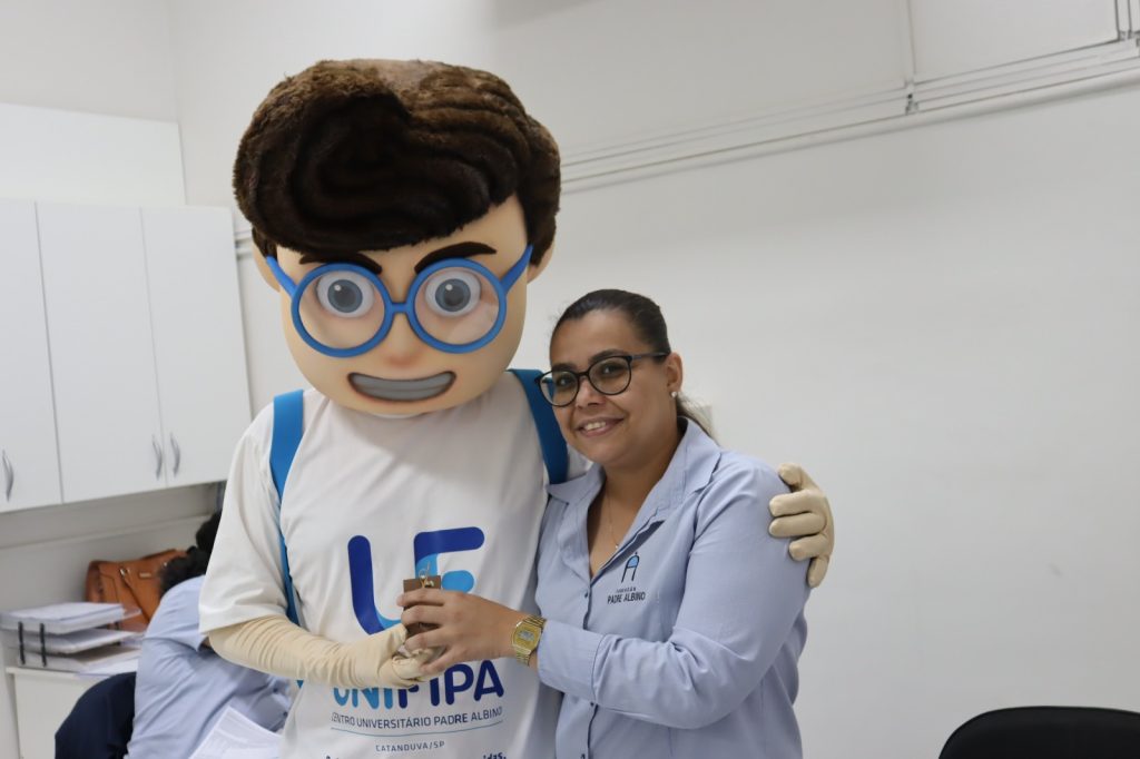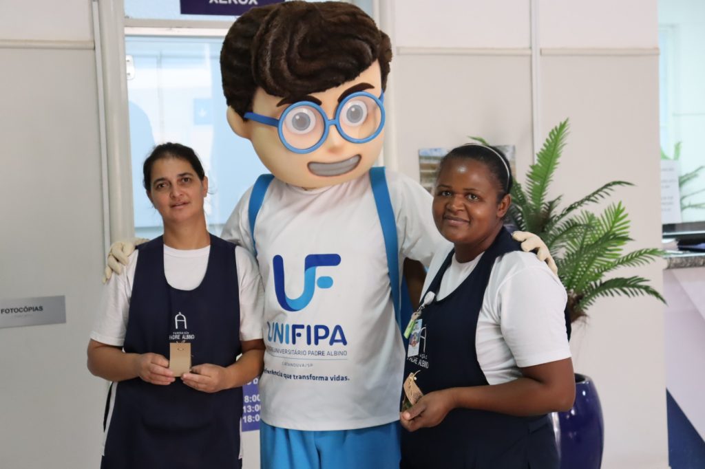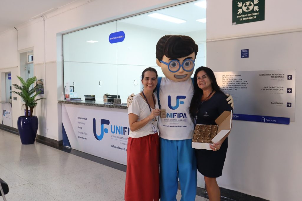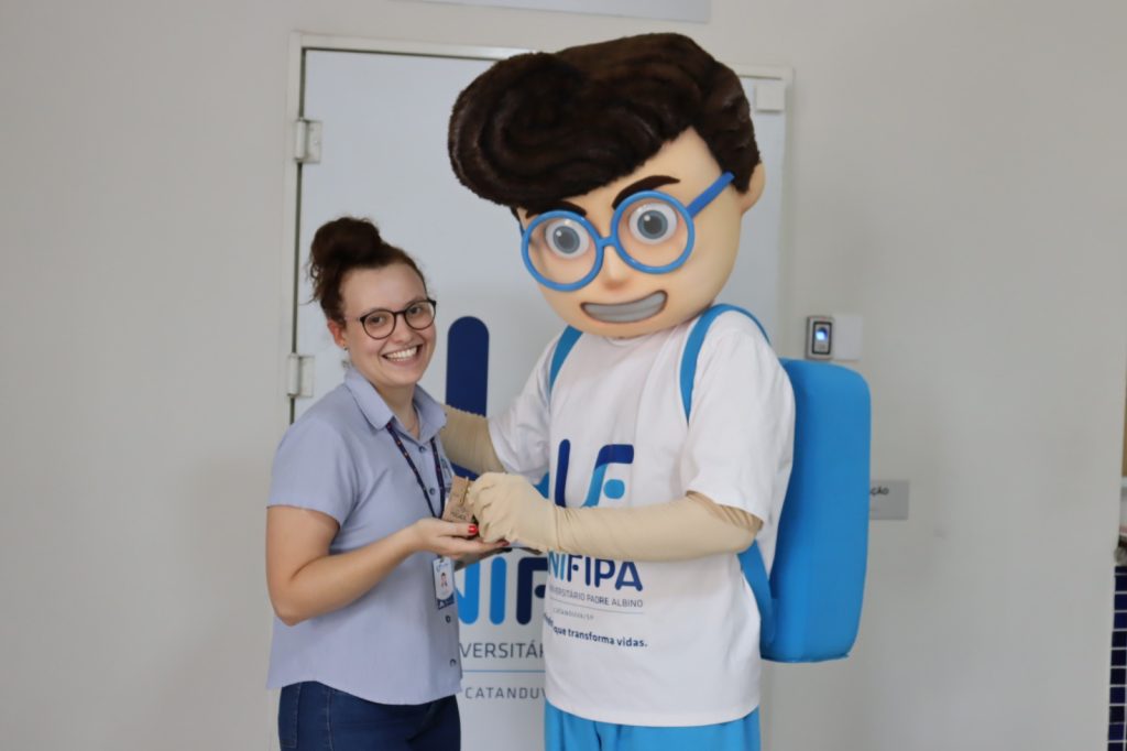 A entrega foi feita pela coordenadora da Área de Negócios, Janaína Rogante Huck, e pelo mascote da instituição, Edu. Além dos presentes, mural foi montado com mensagens escritas por colegas de trabalho, expressando agradecimento e valorização às colaboradoras.