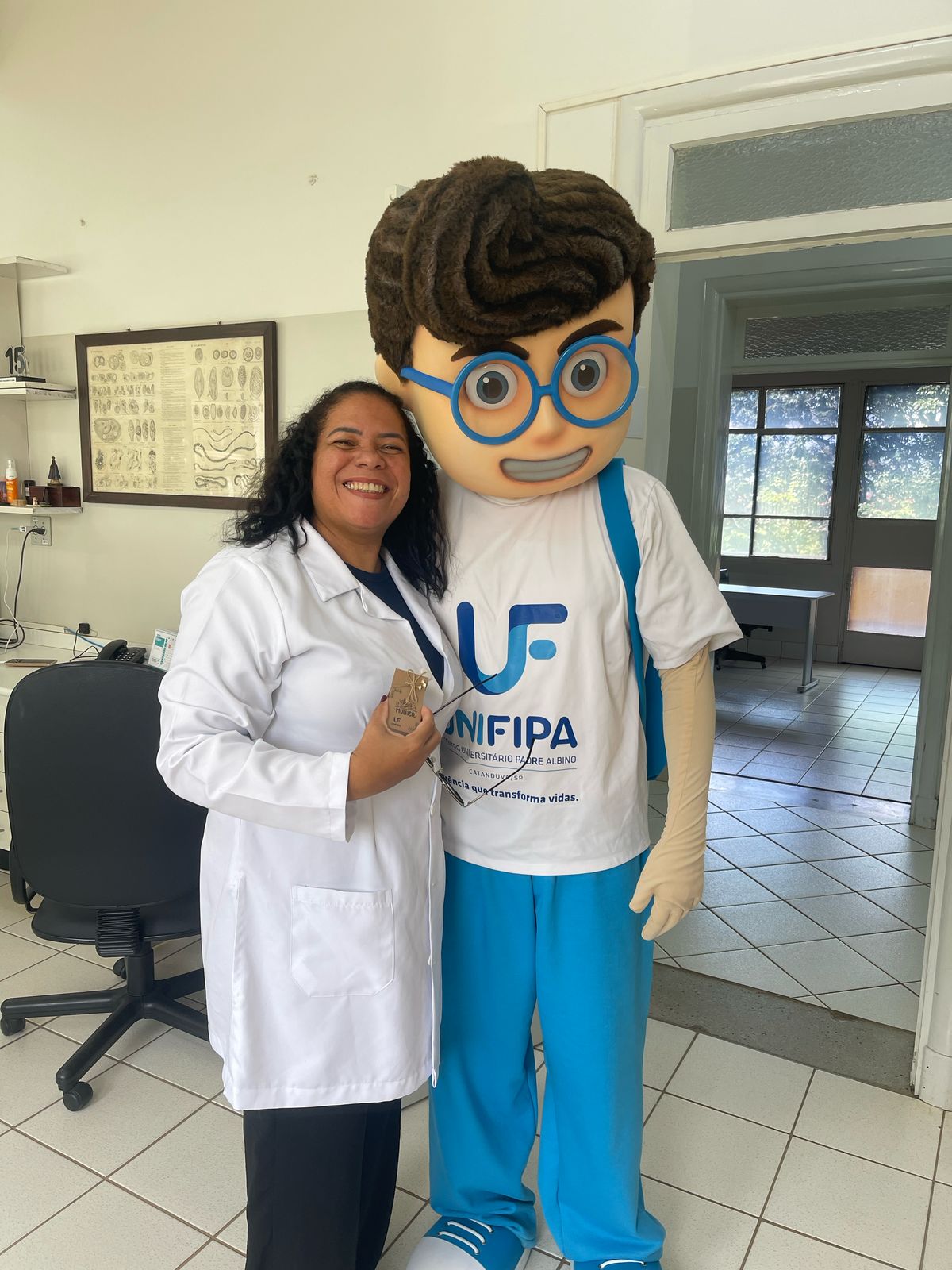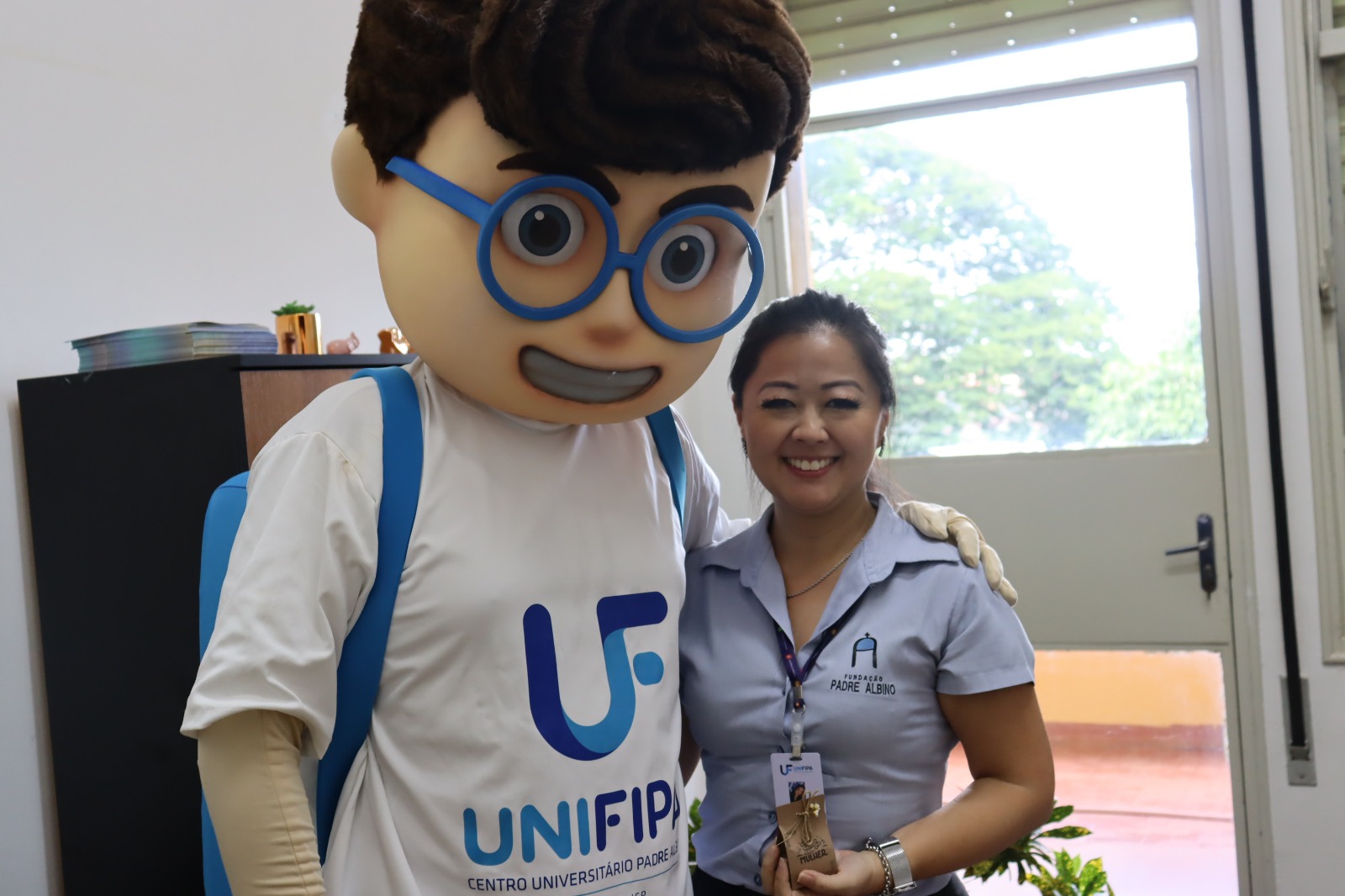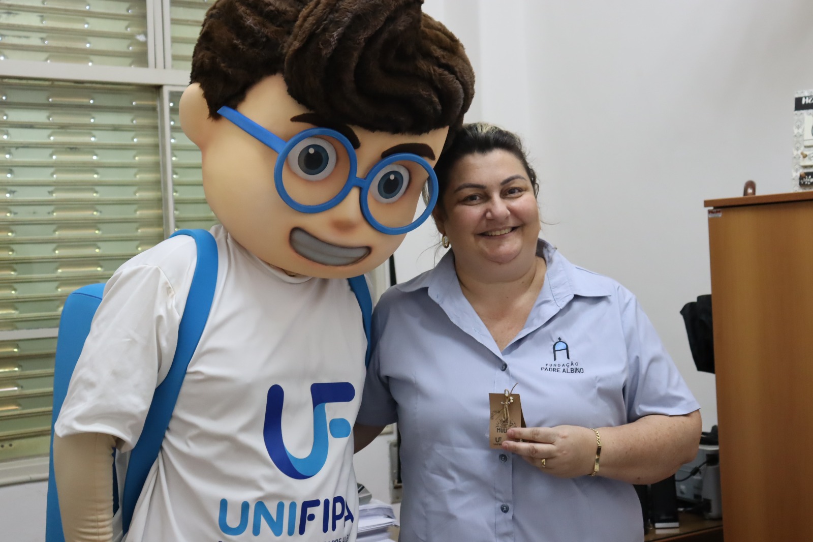 A entrega foi feita pela coordenadora da Área de Negócios, Janaína Rogante Huck, e pelo mascote da instituição, Edu. Além dos presentes, mural foi montado com mensagens escritas por colegas de trabalho, expressando agradecimento e valorização às colaboradoras.