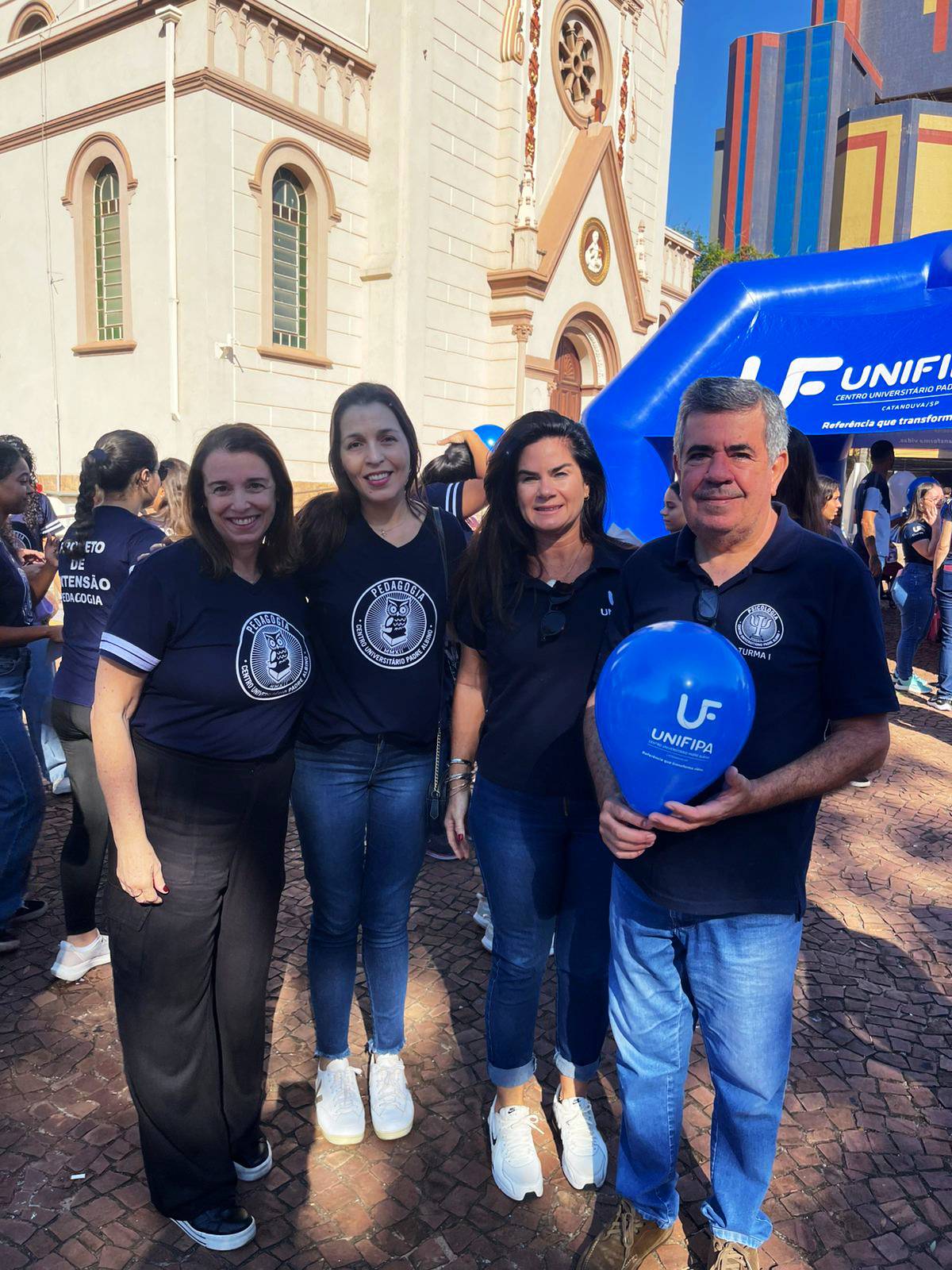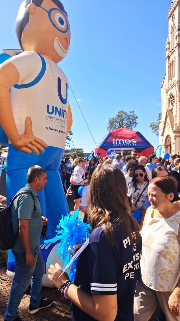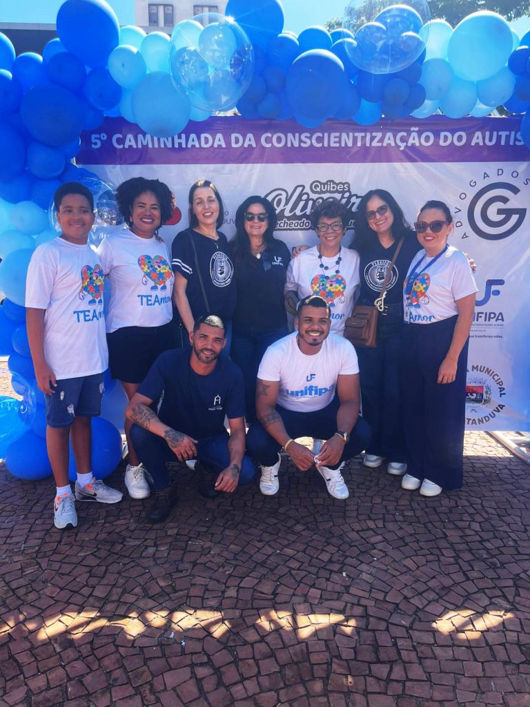 A UNIFIPA participou, no último sábado (11), da 5ª Caminhada pela Conscientização do Autismo, realizada na Praça da Matriz, em Catanduva. A ação integrou a programação do Abril Azul, mês dedicado à conscientização sobre o Transtorno do Espectro Autista (TEA), e reuniu famílias, profissionais, instituições e membros da comunidade. Representando a instituição, os cursos de Fonoaudiologia, Psicologia e Pedagogia desenvolveram atividades voltadas ao público presente, com foco na informação, acolhimento e inclusão. O curso de Fonoaudiologia distribuiu folhetos informativos sobre o autismo, abordando também a atuação do profissional da área no acompanhamento de pessoas com TEA. Já o curso de Psicologia promoveu atividades de desenho para crianças, enquanto o curso de Pedagogia organizou ações lúdicas, com o objetivo de estimular a participação infantil e a interação social.
