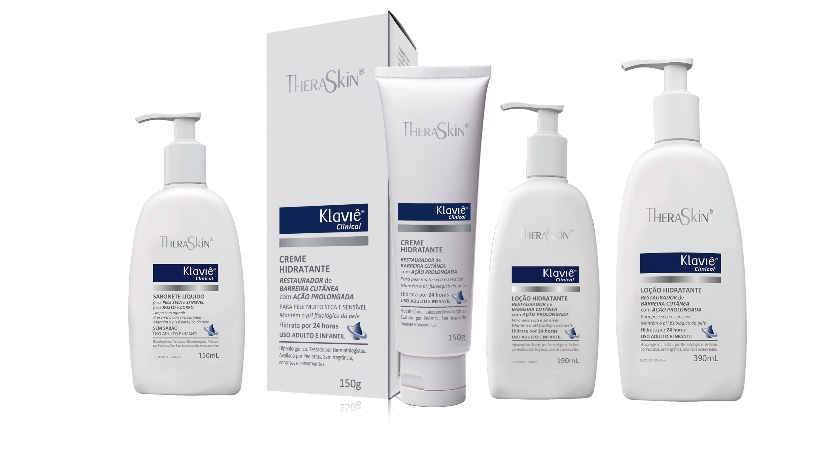 Hidratante: no verão, a pele fica mais exposta às radiações solares, o que pode levar ao aumento da oleosidade e ao ressecamento, já que há uma perda maior de água por conta das altas temperaturas. Para repor os nutrientes necessários, aposte no uso de cremes hidratantes diariamente, principalmente nas áreas mais sensíveis, como mãos, pés e cotovelos. A Linha Klaviê® Clinical, da TheraSkin®, contém ingredientes que ajudam a restaurar a barreira cutânea da pele, diminuindo a sensação de aspecto áspero e seco. Sua fórmula possui um blend de ingredientes com propriedades anti-inflamatórias que cuidam e reparam a pele, deixando-a mais macia e saudável, acalmando a pele irritada ou queimada de sol.